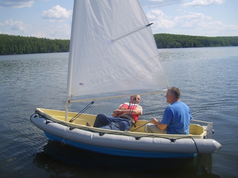 Лодка поставляется с парусным снаряжением: стакселем, гротом, сопутствующим такелажем, швертом, рулем, а также комплектом кранцев.