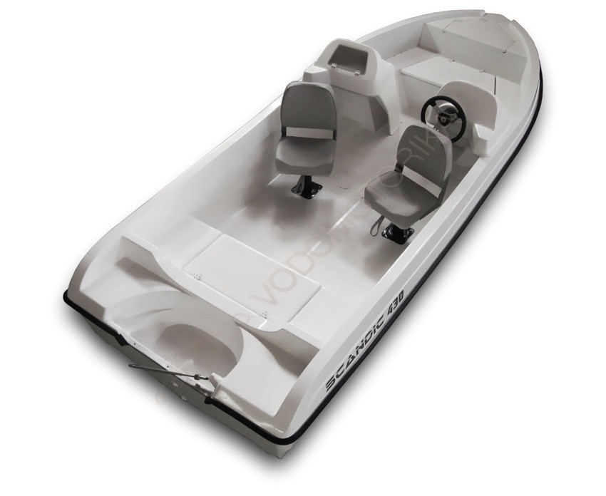 В комплект SCANDIC HAVET 430 DC входит стеклопластиковая лавка на корме, которая является частью корпуса.