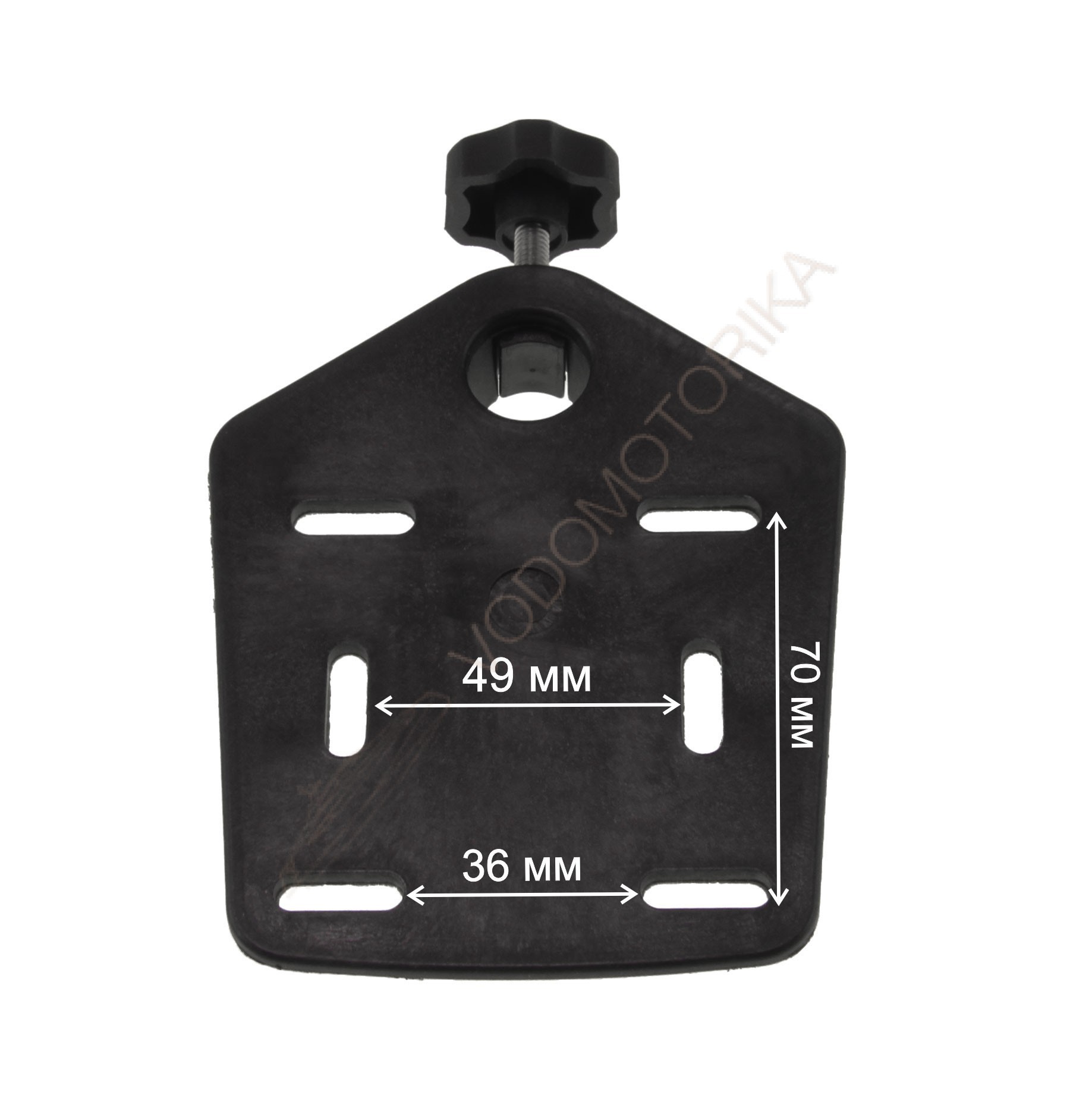 Закрепляется на транец или борт судна с помощью струбцины. Максимальная ширина раздвигания скобы струбцины 75 мм.