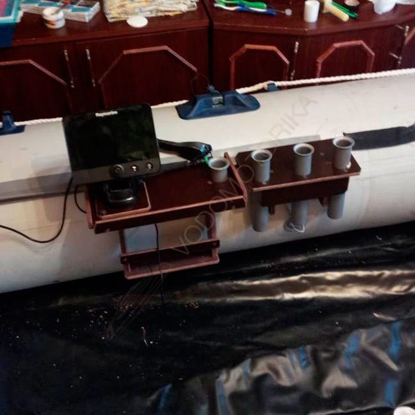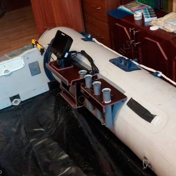 Стойка для трех спиннингов в лодку ПВХ, значительно облегчит компановку рыболовных аксессуаров в кокпите вашего судна. Вы сможете разместить спиннинги, подсаки и прочие длинномеры во время рыбалки. Стойка фиксируется на ликтрос при помощи ликпаза который идет в комплектации. Стойка для спиннингов выполнена из ламинированной влагостойкой фанеры, толщиной 9 и 15 мм, торцы пройдены влагозащитным средством, что обеспечит долгий срок службы.