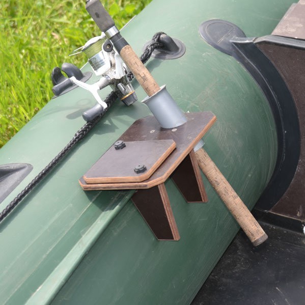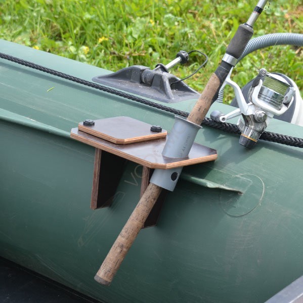 Крепежный блок для спиннинга выполнен из влагостойкой фанеры, что позволяет его использовать во влажной среде. Пластиковый стакан не будет повреждать спиннинг с катушкой во время движения. Сам блок можно крепить на систему креплений ликтрос и с легкостью передвигается вдоль борта лодк