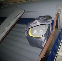 Сумка кормовая Флагман имеет внутренний объём 0,25 м.куб. Сумка имеет надёжную съёмную систему крепления по борту лодки в кормовой её части.