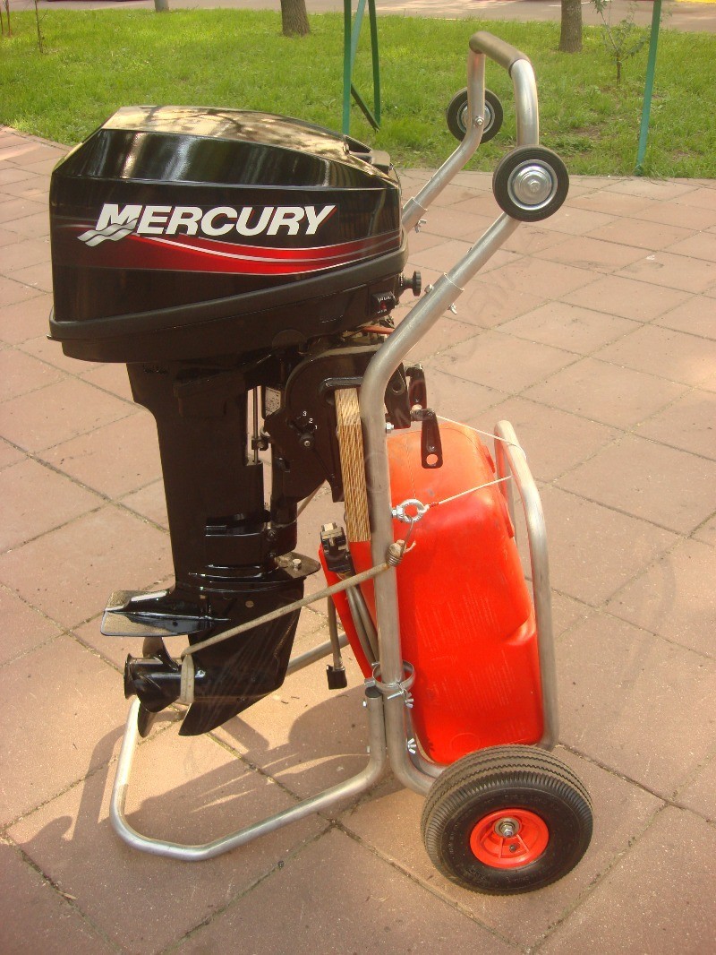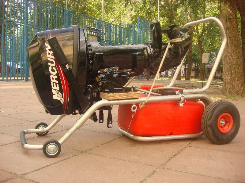 Высота крепления мотора на тележке и ее конструкция позволяют подставлять емкости для слива при ТО и ремонте.