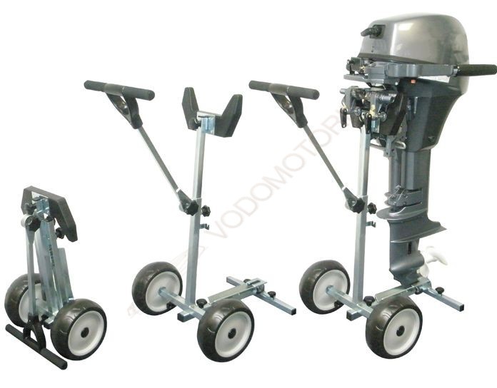 Таким же образом мотор можно ставить на тележку снимая мотор с лодки не прилагая значительных усилий.