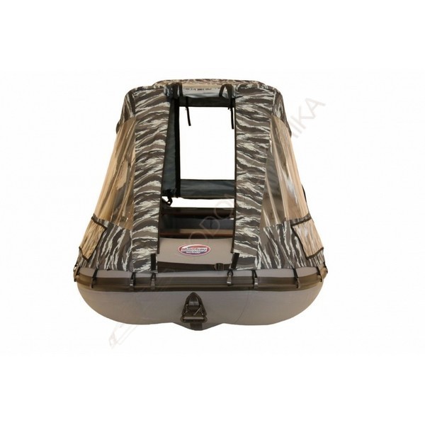 Тент-трансформер или тент "кабриолетного" типа представляет собой "палатку" - полностью закрывает все внутреннее пространство лодки. Тент незаменим в условиях непогоды: защищает пассажиров и вещи от дождя, брызг воды, ветра, что позволяет проводить больше времени на воде даже в холодное время года.