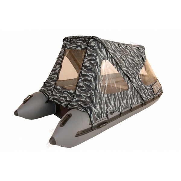 Каркас устанавливается на лодку при помощи специальных креплений (рым опоры), наклеенных на баллоны. Заднюю часть тента можно полностью отстегнуть, оставив закрытой только переднюю половину лодки. Также предусмотрены специальные вентиляционные отверстия (воздушные клапаны).