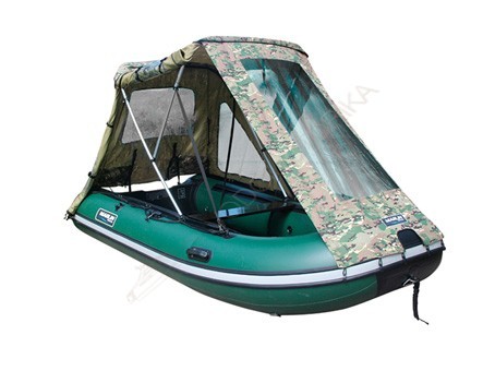 Тент кабриолетного типа предназначен для защиты пассажиров и вещей надувной лодки от дождя, мокрого снега и ветра во время движения, при стоянке на воде и на берегу.