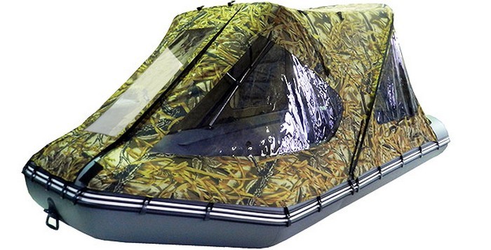 Для установки на надувную лодку необходима предварительная установка креплений для тента в носовую часть лодки. Крепления приобретаются вместе с тентом и могут быть установлены самостоятельно.