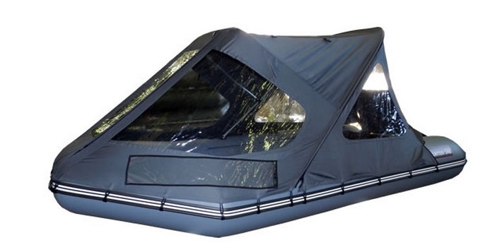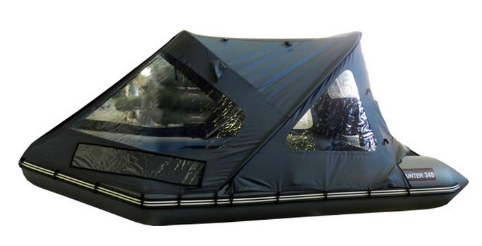 Тент кабриолетного типа накрывает надувную лодку со всех сторон.