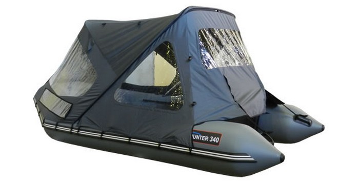 Тент-трансформер разработан с учетом конструкции и обводов надувной лодки модели Хантер 340.