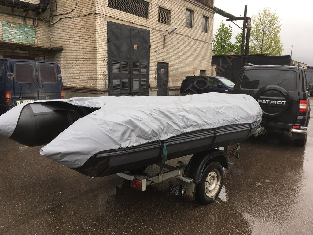 Для более жесткой фиксации транспортировочного тента на лодке при ее перевозке на прицепе в комплекте идут длинные ремни-стяжки. Тент можно оставлять накрытым на лодке на всю зиму, при перевозке и стоянке все вещи в лодке останутся сухими и чистыми, тент легко моется от пыли и грязи.