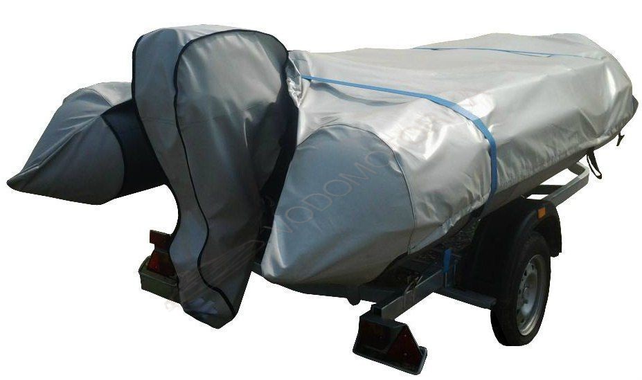 Конструкция транспортировочного тента представляет собой чехол закрывающий сверху всю лодку от носа до концевиков баллонов включительно. Форма чехла соответствует формам конкретной лодки, для каждой модели лодки подходит свой конкретный транспортировочный тент. Конструкция тента позволяет перевозить подвесной мотор на транце лодки.