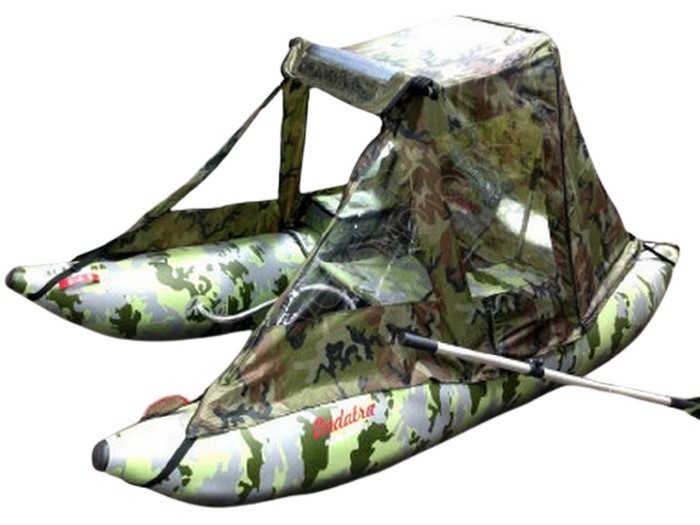 Вся незатейливая конструкция самого суденышка - это два дугообразных надувных баллона из ПВХ на металлической раме и складной стул. Из-за такой миниатюрности к транцу предъявляются соответствующие строгие требования. Разработчики сделали этот важный аксессуар максимально легким, наделили минимальными габаритами, уникальной конструкцией и специальными креплениями.