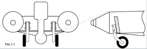 Система является быстросъемной, состоит из двух пар основных деталей (2 стойки с колесами и 2 кронштейна, установленных на лодке).