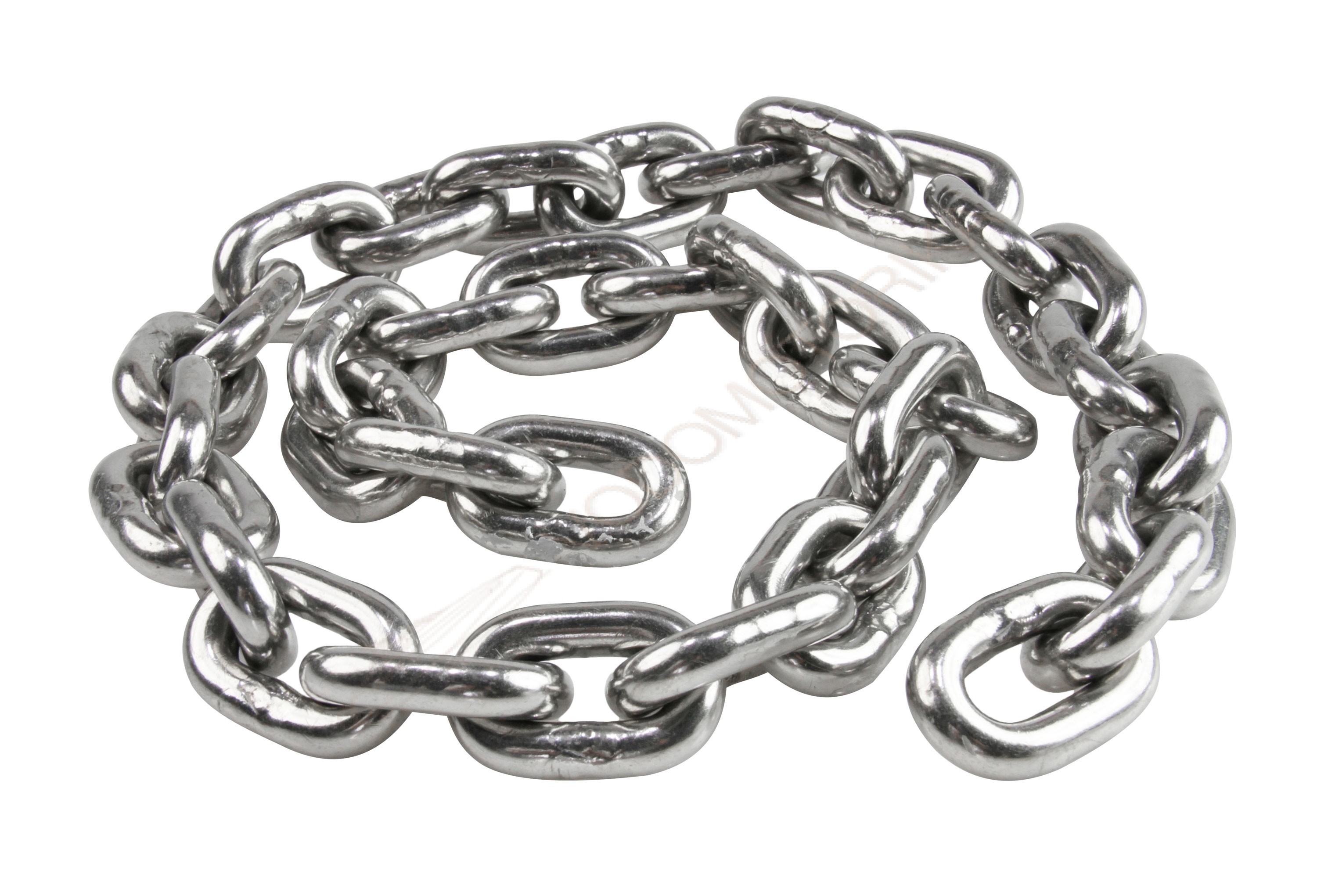 Цепь короткозвенная DIN 766 - используется для создания подвесок и растяжек, а также для различных такелажных приспособлений негрузового назначения. Цепь короткозвенная из нержавеющей стали (AISI316), состоит из коротких стальных звеньев овальной формы, имеет малый коэффициент растяжения. Хорошо подходит для использования с якорными лебедками.