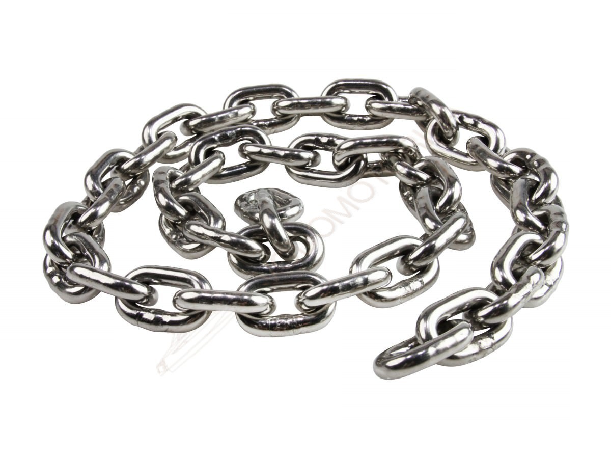 Цепь короткозвенная DIN 766 - используется для создания подвесок и растяжек, а также для различных такелажных приспособлений негрузового назначения. Цепь короткозвенная из нержавеющей стали (AISI316), состоит из коротких стальных звеньев овальной формы, имеет малый коэффициент растяжения. Хорошо подходит для использования с якорными лебедками.