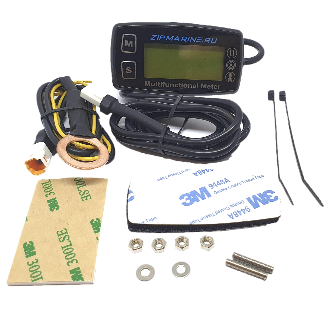 Индикация: обороты текущие, максимальные обороты в последнем цикле использования, предупреждение о превышении установленного пользователем предела максимальных оборотов, моточасы, 2 независимых индивидуально настраиваемых таймера периодов обслуживания (к примеру, смены масла), температура текущая, температура максимальная (возможность пользовательской установки максимальной температуры, при достижении которой на дисплее прибора отобразится предупреждение, а достигнутое значение температуры будет записано в память прибора).