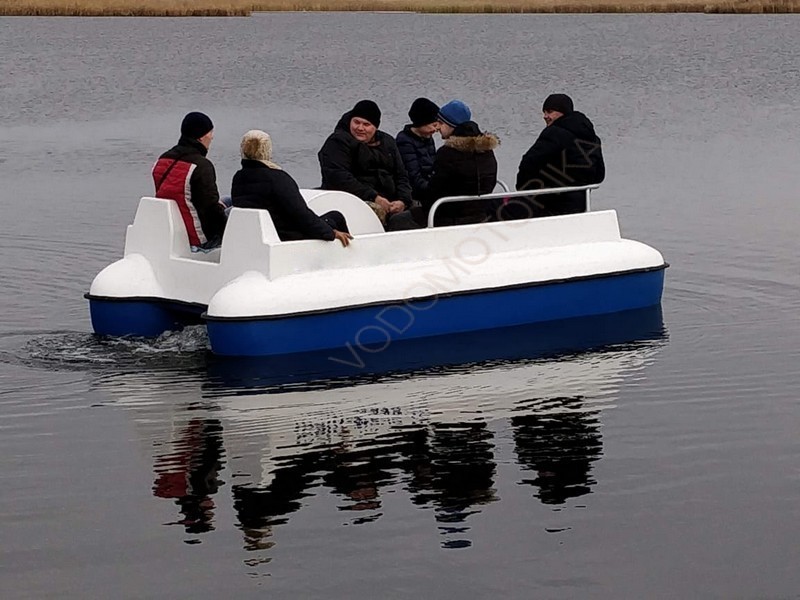Водный велосипед получил цельный корпус нижней части с обтекаемыми поверхностями, что позволило значительно увеличить остойчивость модели и улучшить ходовые качества.