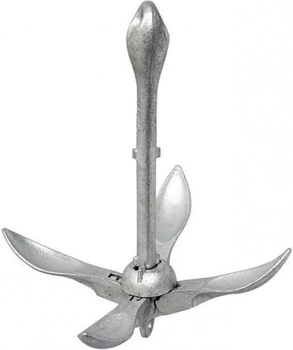 Якорь за счет складывания и фиксации лап удобен при транспортировке и хранении, в случии надобности якорь легко раскладывается и фиксируется специальным стопором.