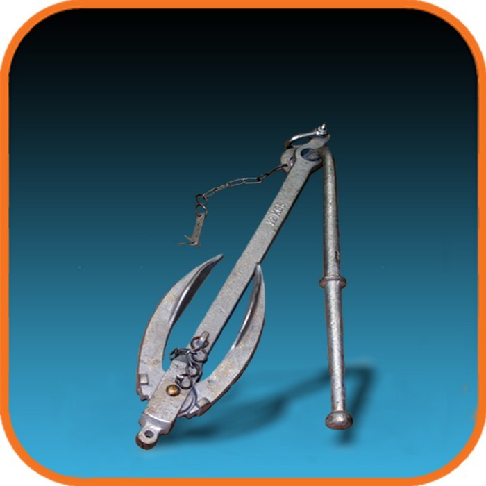 Якорь складной Адмиралтейский изготовлен из оцинкованного чугуна, что делает его стойким к корозии и позволяет применять как в пресных, так и соленых водоемах.