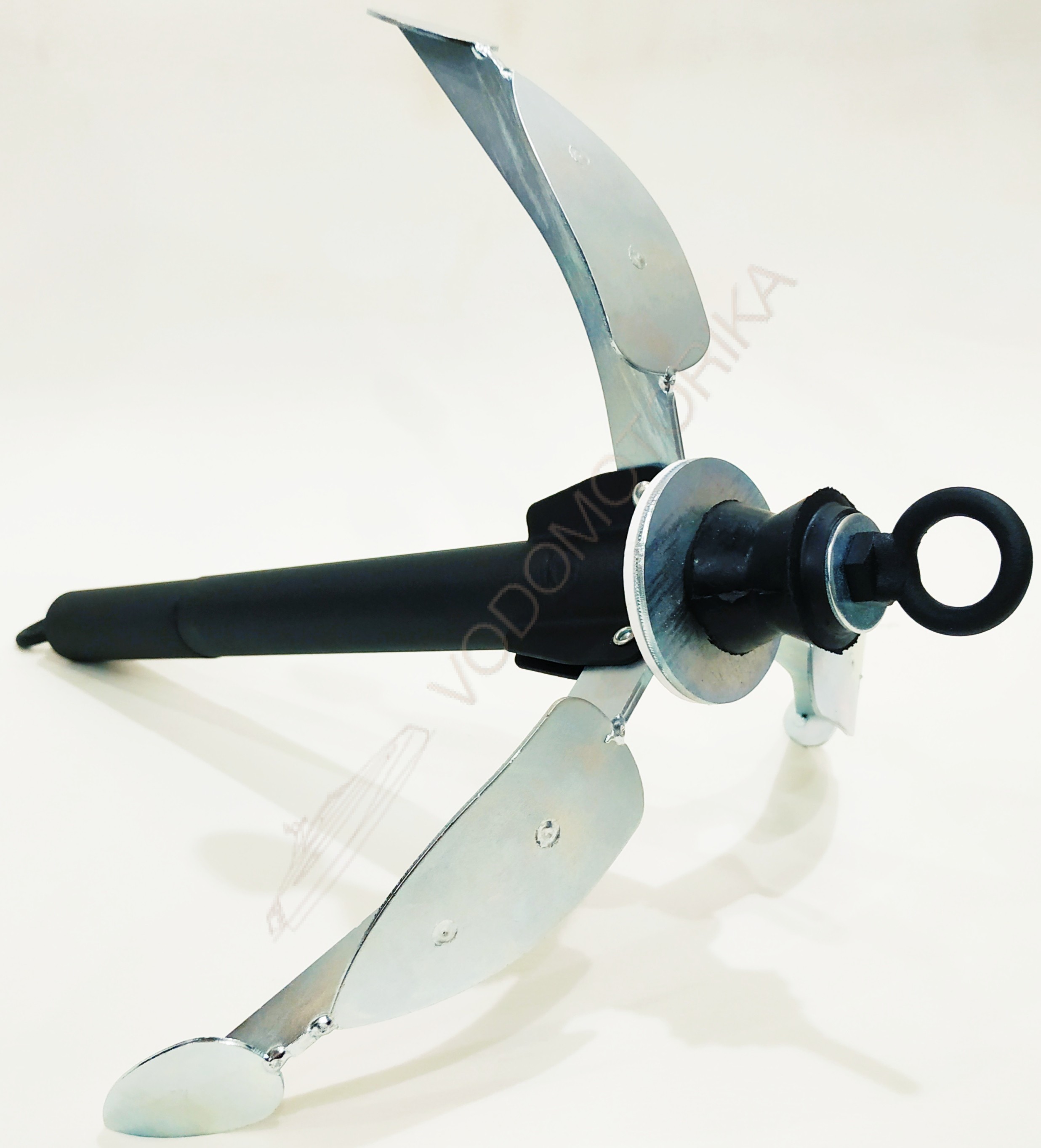Компактность - возможность складывать лапы якоря, что значительно уменьшает его габариты и обеспечивает безопасность при транспортировке. Увеличенный грунтозацеп на лапах якоря, позволяет более надежно удерживать лодку на месте. Для приведения якоря в рабочее положение необходимо последовательно развести лапы якоря, преодолевая сопротивление фиксирующей пружины, до их полной фиксации.