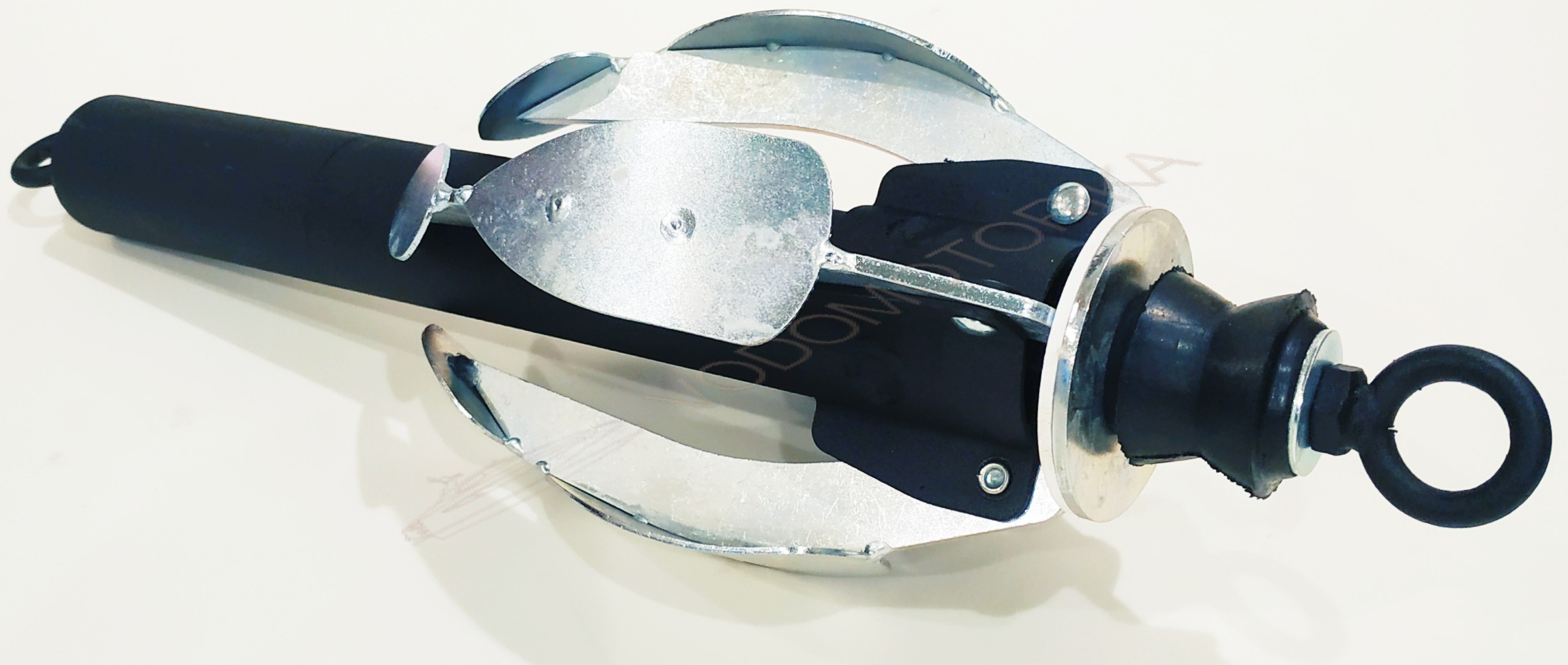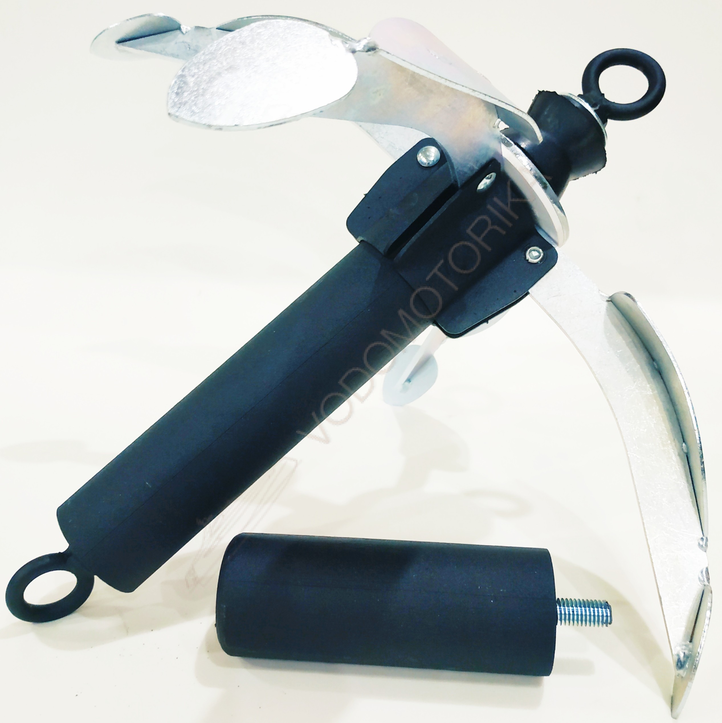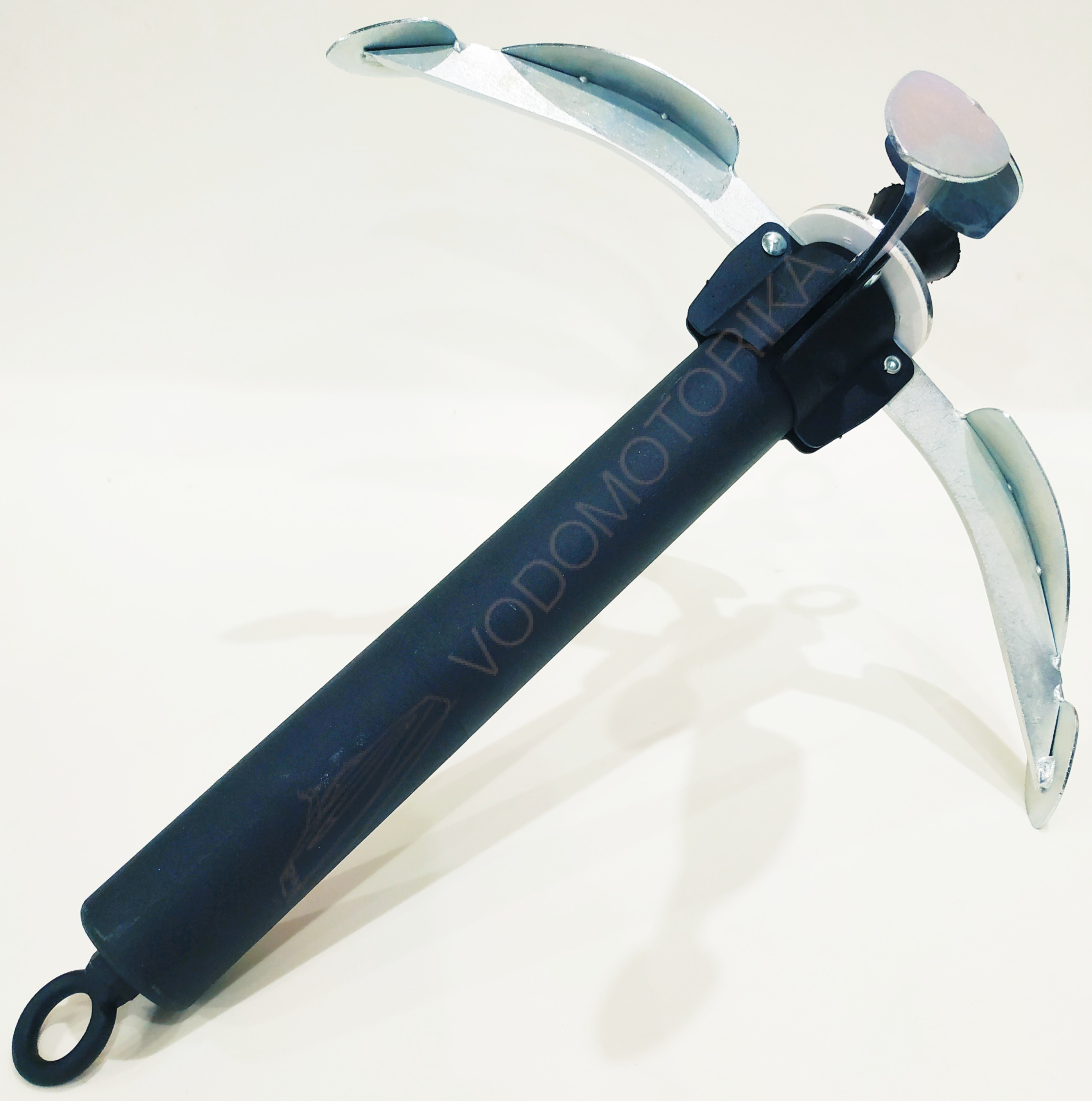 Компактность - возможность складывать лапы якоря, что значительно уменьшает его габариты и обеспечивает безопасность при транспортировке. Увеличенный грунтозацеп на лапах якоря, позволяет более надежно удерживать лодку на месте. Для приведения якоря в рабочее положение необходимо последовательно развести лапы якоря, преодолевая сопротивление фиксирующей пружины, до их полной фиксации.