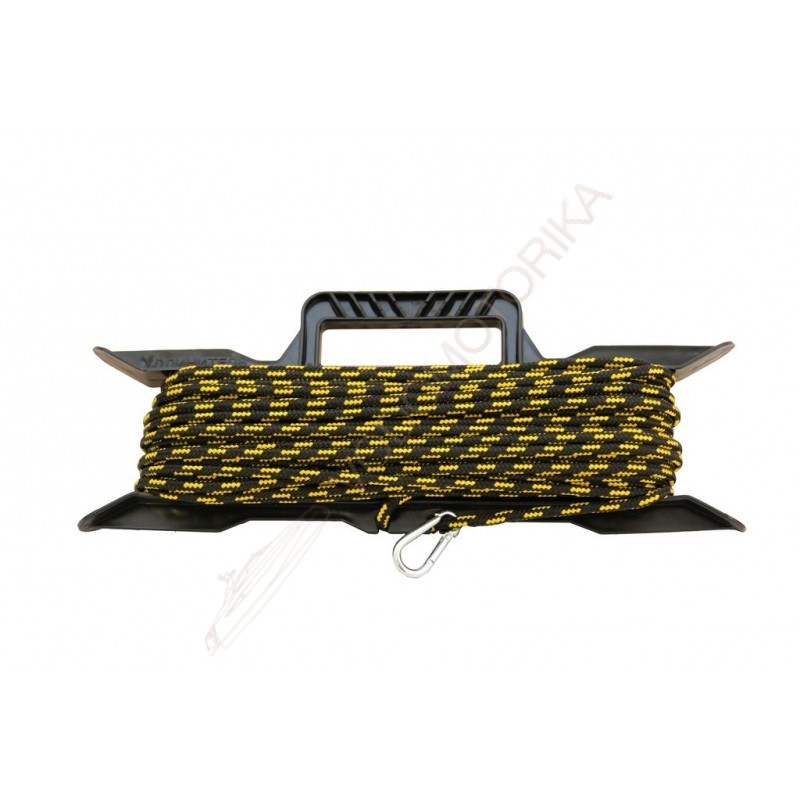 Состоит из полипропиленового фала длиной 20 м плюс карабин и пластикового мотовила с эргономичной ручкой. Фал полипропиленовый плетеный с сердечником - 6 мм – разрывная нагрузка 400 кг. Не боится УФ излучения. Износостойкий. Легкий.
