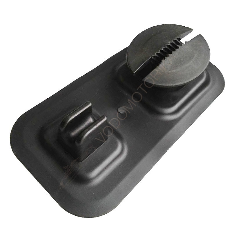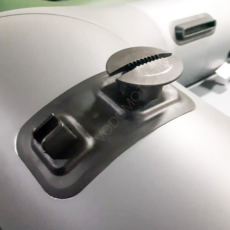 Якорный рым представляет платформу из ПВХ материала, с пазами специальной формы с зазубринами в одном направлении. Данная конструкция позволяет легко и надежно зафиксировать якорный канат на необходимую длину. Сняться с якоря очень легко, нужно всего лишь потянуть фал в обратную сторону, высвободив его из паза.