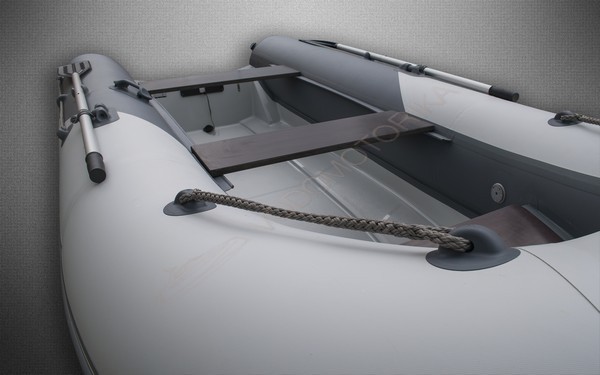 Лодка RIB STEL R-360 имеет пол из стеклопластика, который является частью корпуса.