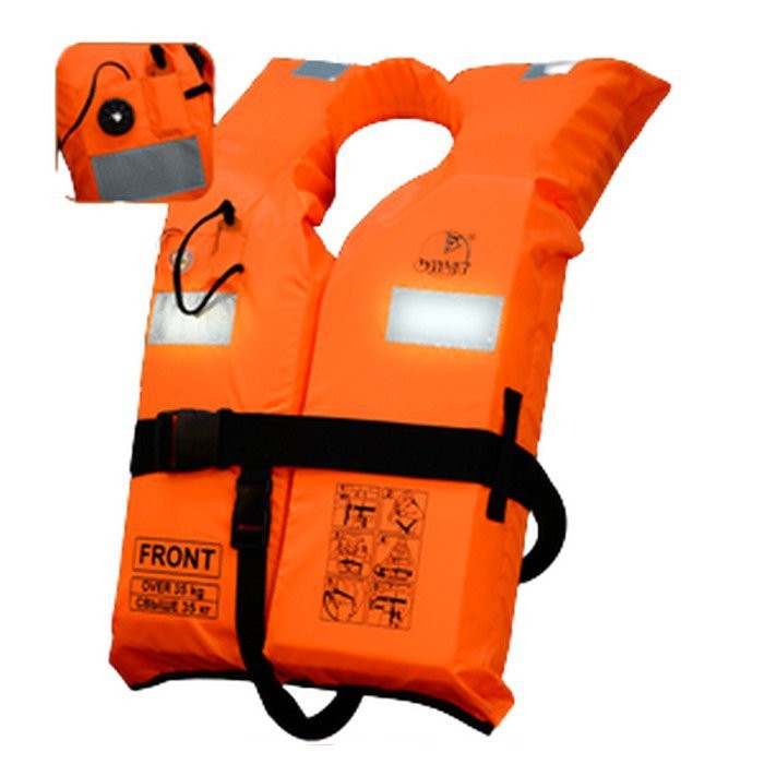 Спасательный жилет сконструирован таким образом, что человек упавший в воду, всплывает лицом вверх, даже если он упал в воду вниз лицом, и удерживается в таком положении не прикладывая никаких усилий.